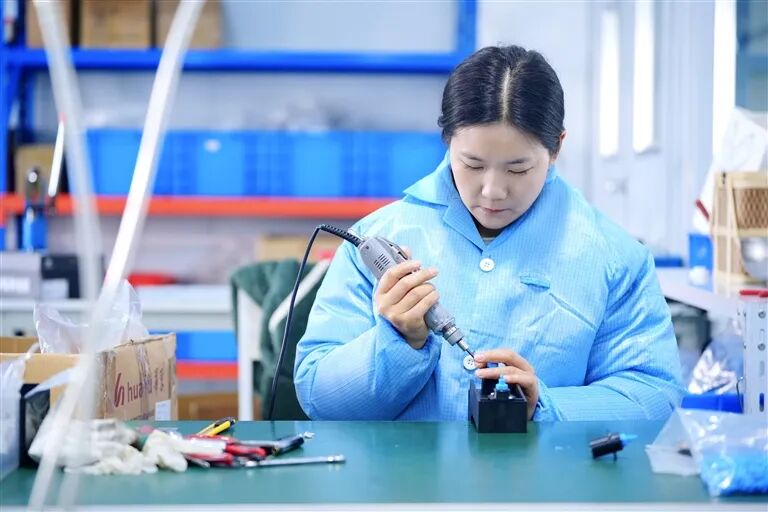 在坐落周矶管理区的湖北维力科技有限公司车间内,工人赶紧赶制国外订单。企业正月初八复工,已接小字符喷码机订单100多台。公司上一年建立越南分公司,本年拟建海外仓,优化产品,力求年产量5000万元,将外贸占比从30%提升至50%,以更快、更稳、更快捷的产品抢占国际商场。(记者 关洪磊)